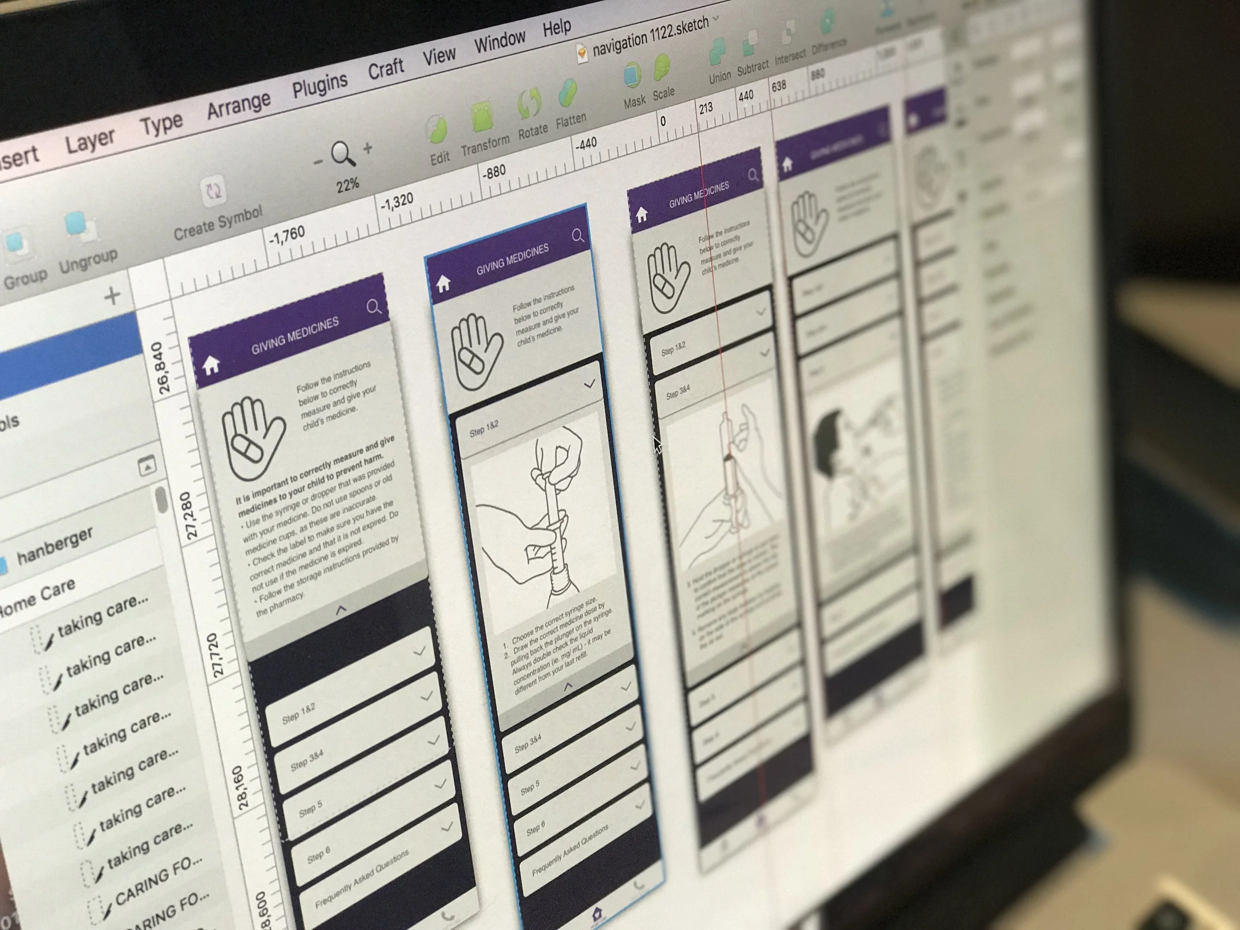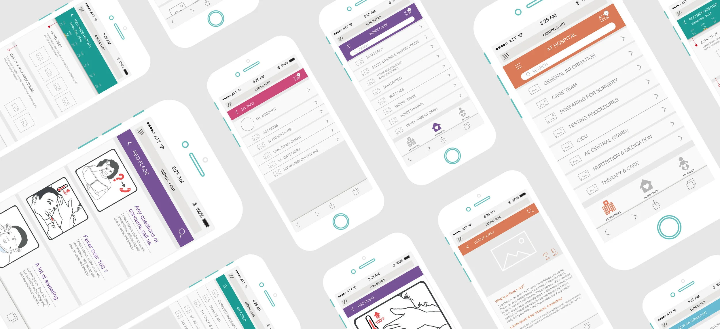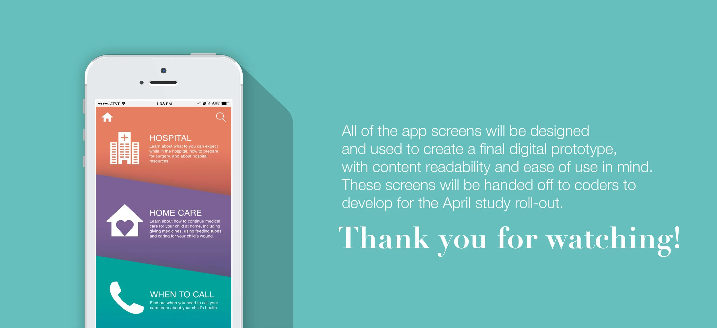 After designing a basic layout of the app’s architecture, the LWC team created a prototype of what the app could look like using InVision. This tool was used to test the layout of information in the architecture. Tasks were designed for the clinicians and families to complete so it could be determined how difficult it was to move through the information.